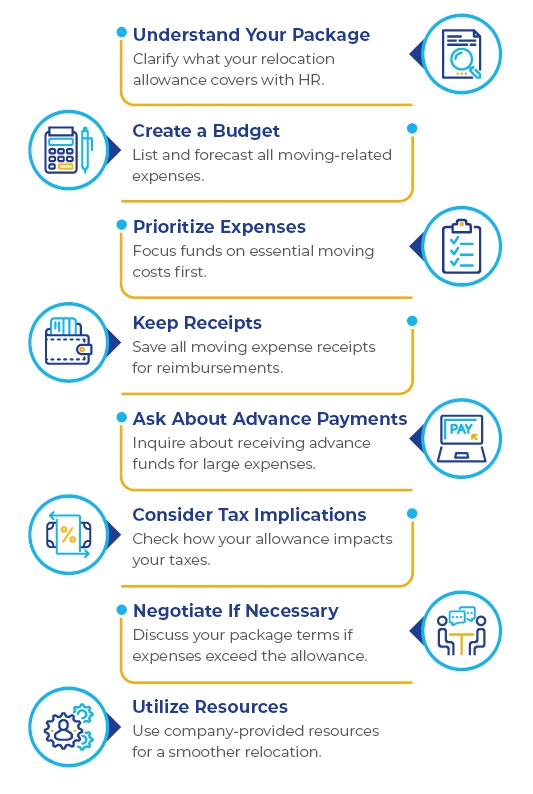 To manage your relocation costs effectively, it’s a good idea to keep detailed records of all expenses related to your move. This includes receipts for moving services, temporary housing costs, and any other expenses that are covered by your relocation allowance. By keeping organized records, you can easily track how much of your allowance has been used and ensure that you are not exceeding the allotted amount.