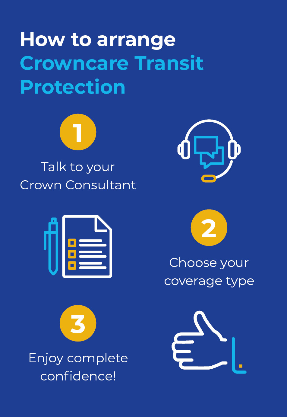 Whether by road, rail, or air, your belongings are fully protected with CrownCare’s comprehensive, door-to-door coverage.